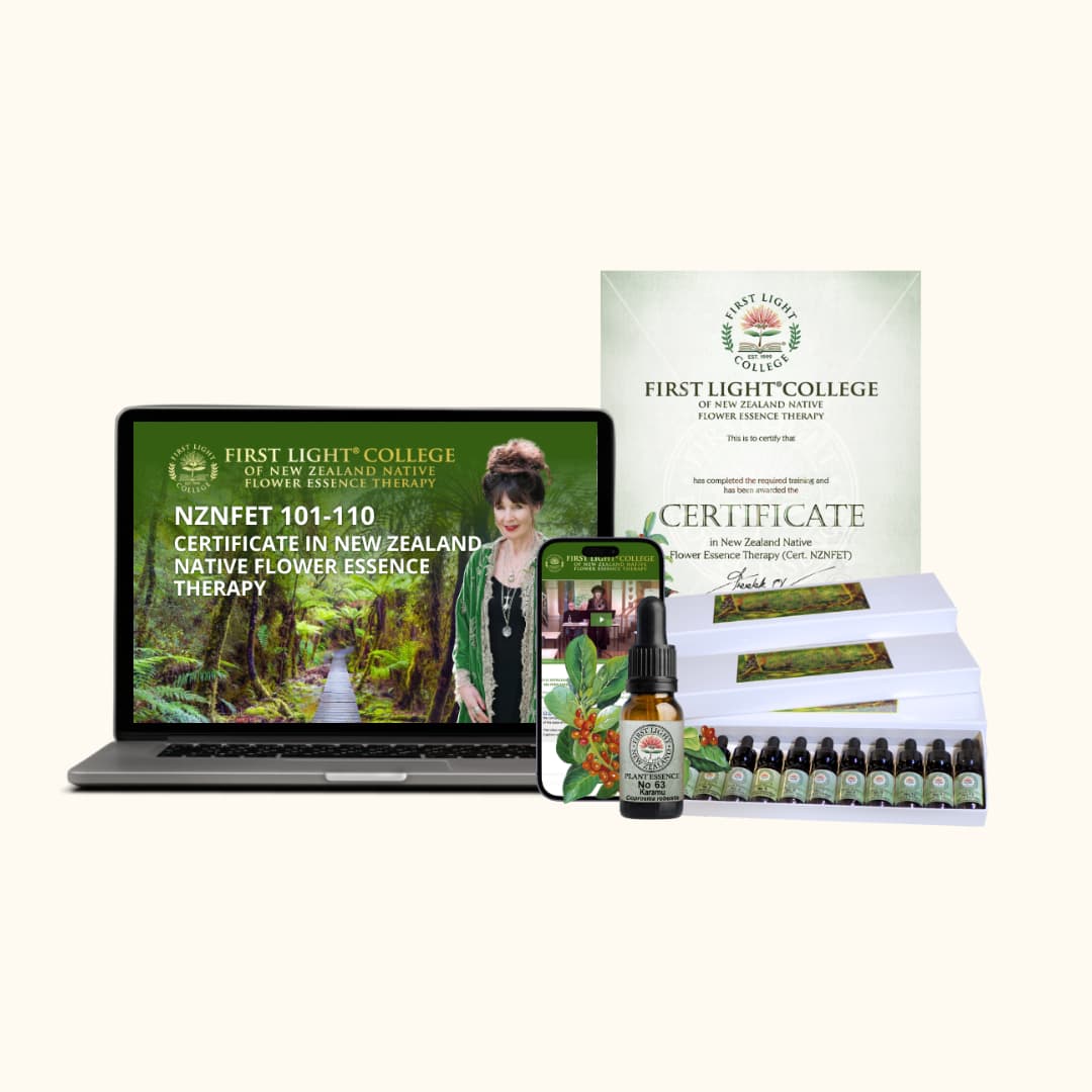 You can become a First Light Flower Essences of New Zealand® Registered Practitioner by obtaining your Certificate (Cert.NZNFE) or Diploma (Dep.NZNFE) in New Zealand Native Flower Essence Therapy.